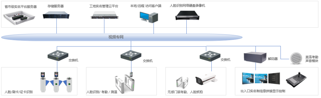基于先进的物联网、移动互联网、AI人工智能、智能安防视频分析信息技术,深度融合智能人脸识别、工地智慧AI防疫测温等应用,协助工地实现智能化多维监视与信息采集、数据统计、智能管理、统一操控。